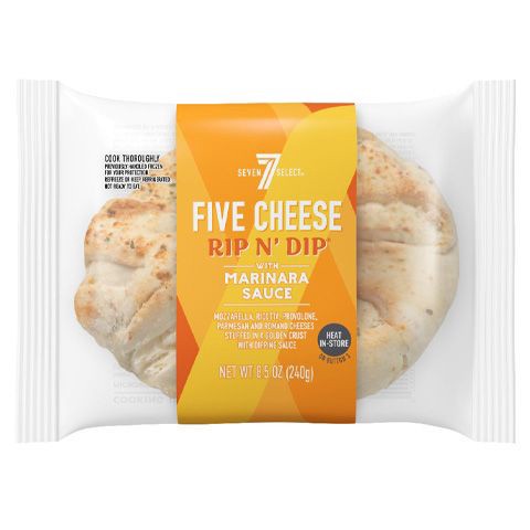 The 7-Select Rip n' Dip Five Cheese is an exciting new heat at home pizza option Classic pizza dough is filled with a cheese blend, rolled into a ring and a Marinara sauce included for dipping