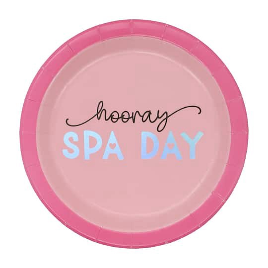 Get these 7" Spa Day Snack Plates, 8ct. by Celebrate It at Michaels. Celebrate a day of fun and relaxation with these cute paper plates. Featuring a fun "hooray SPA DAY" message in holographic foil on…