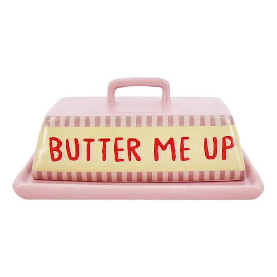 Buy the 7.5" Butter Me Up Butter Dish with Lid by Ashland at Michaels. Featuring ceramic construction and a silly sentiment on the lid, simply add a stick of butter and place on your dining table for …