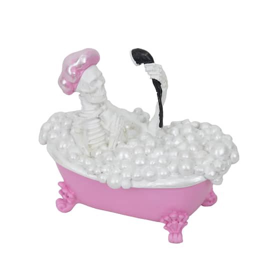 Find the 7.75" Pink & White Bathing Skeleton Tabletop Decor by Ashland at Michaels. Enjoying a bath filled to the brim with bubbles in an ornate clawfoot tub, this skeleton isn't letting a little thin…