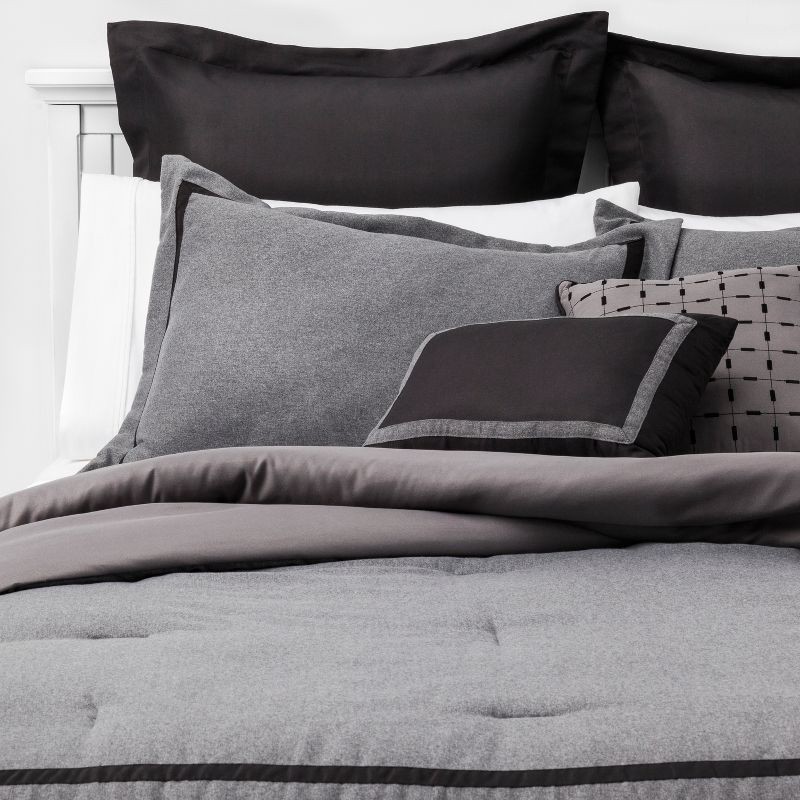 8pc King Applique Border Comforter Set Gray/Black - Threshold™: Polyester Herringbone, OEKO-TEX Certified