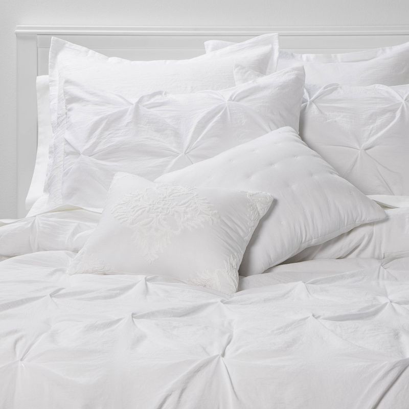 8pc King Pinch Pleat Comforter Set White - Threshold™: Elegant Bedding Ensemble, Machine Washable, OEKO-TEX Certified