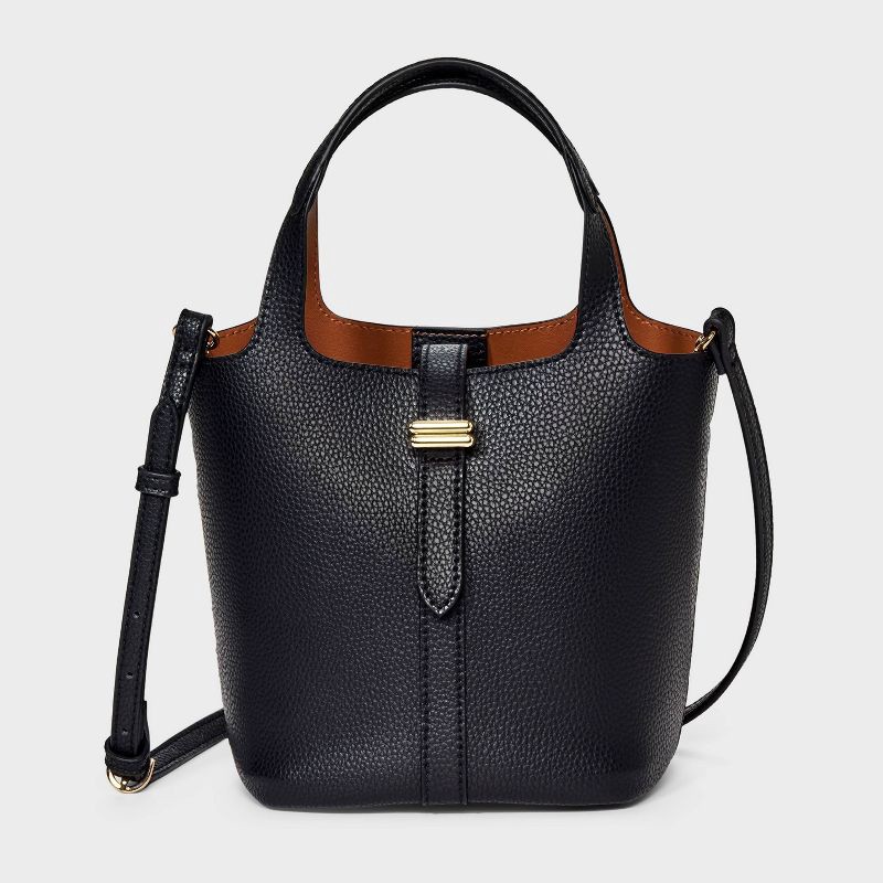 slide 3 of 5, Mini Tulip Tote Handbag with Crossbody Strap - A New Day™ Black, 1 ct