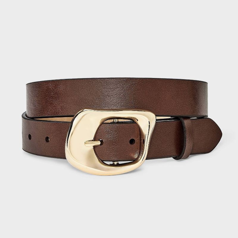 Add a dash of style to your ensembles with this Organic Wavy Buckle Belt from A New Day™. Featuring a smooth exterior with subtle textured detailing, this belt with a medium-width profile features a w…