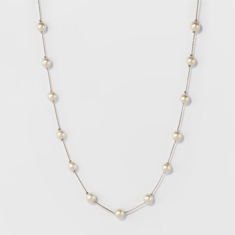 - Silver chain necklace with faux-pearl accents