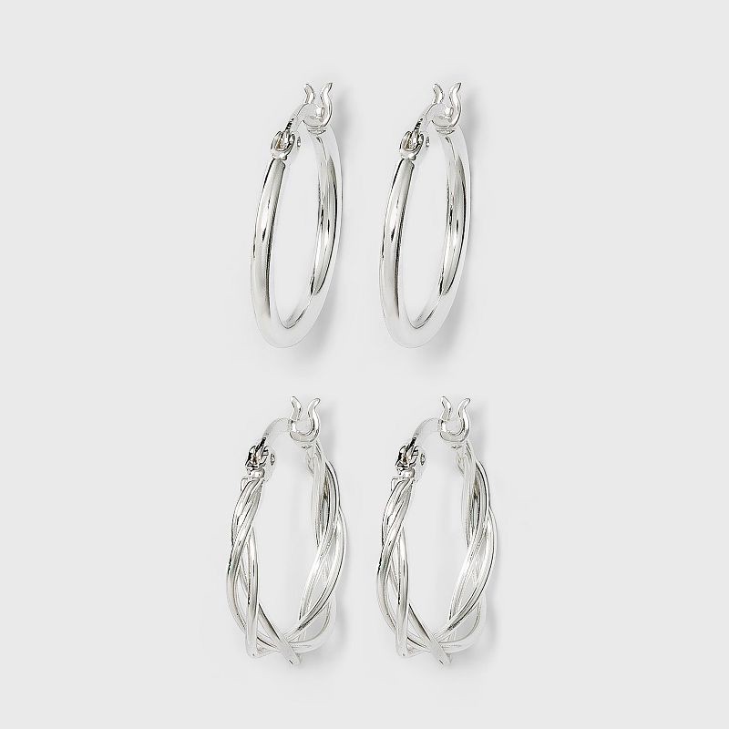 Pick up something that will never go out of fashion with the Braided and Polished Silver Plated Hoop Earring Set from A New Day™. This set includes two pairs of simple hoop earrings in classic styles …