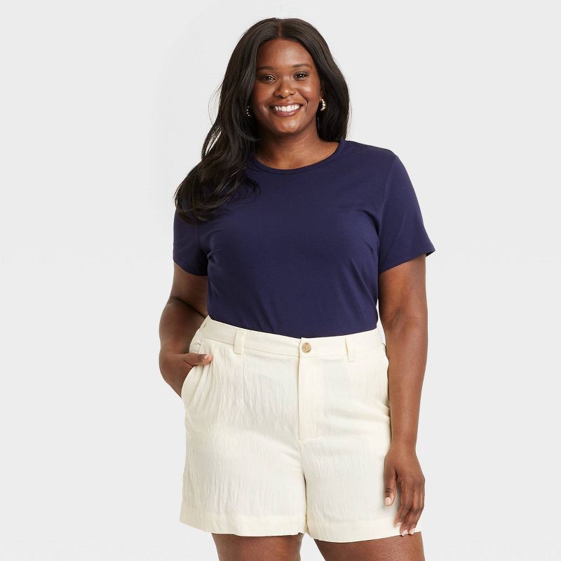slide 4 of 4, Women's Short Sleeve T-Shirt - A New Day™ Navy XXL: Cotton Spandex Blend, Crew Neck, Jersey Fabric, 1 ct