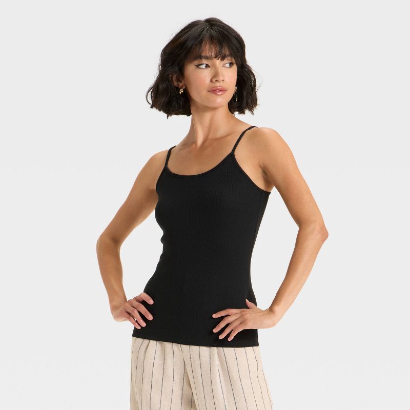 Women's Slim Fit Ribbed Cami - A New Day™ Black L