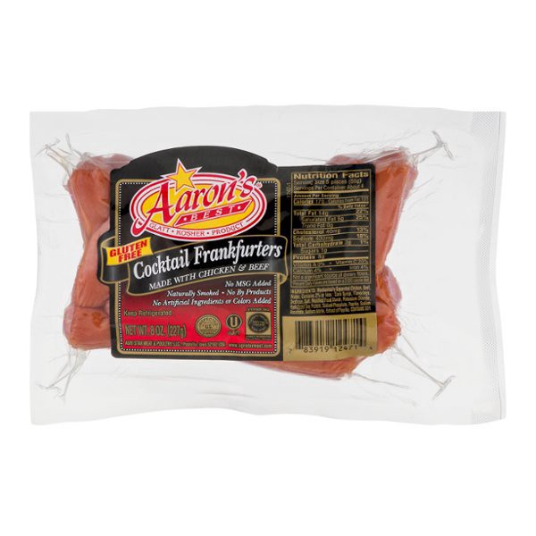 Mechanically Separated Chicken , Beef , Water , Contains 2% Or Less : Corn Syrup , Flavorings , Dextrose , Salt , Modified Food Starch , Potassium Chloride , Hydrolyzed Soy Protein , Sodium Phosphate …