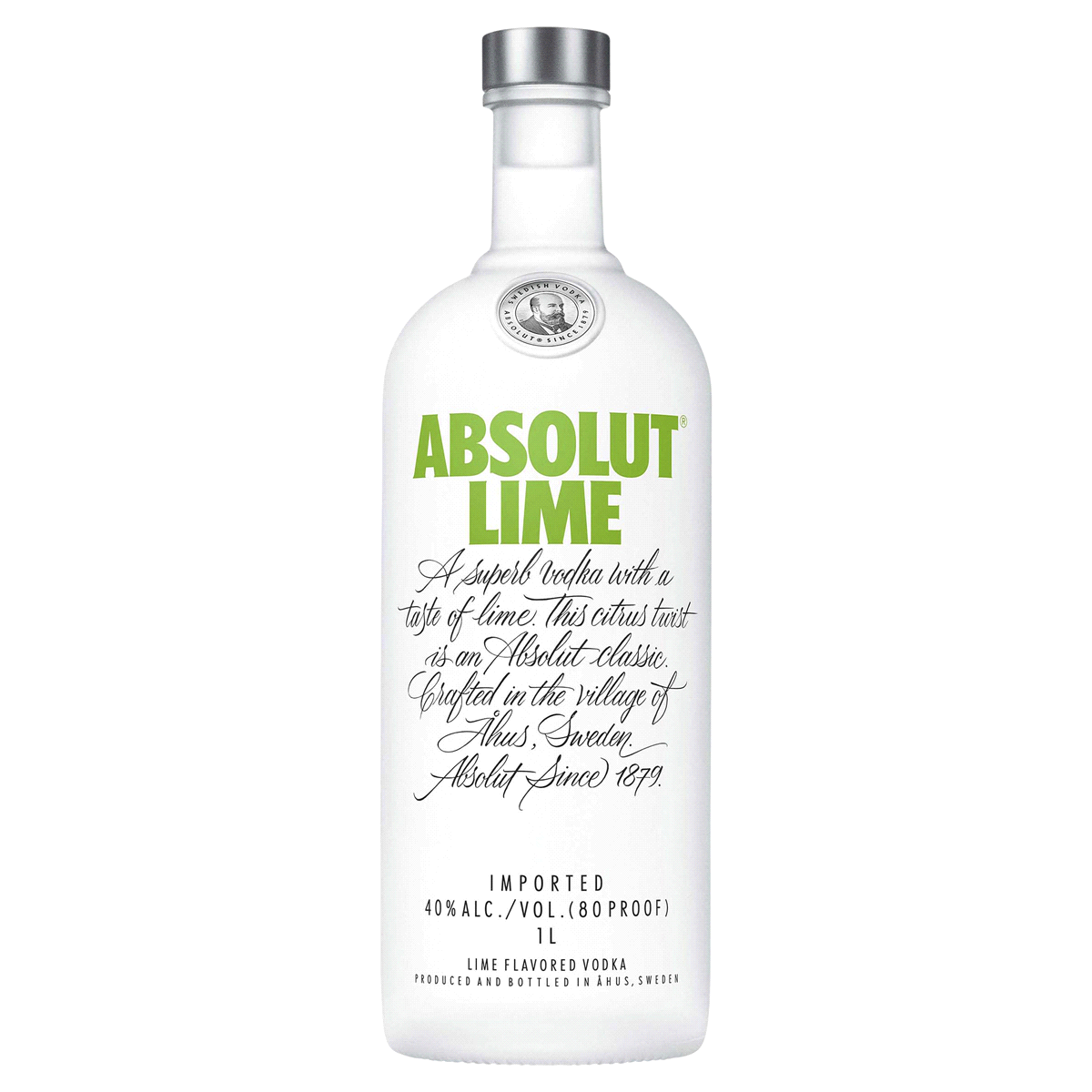 Lime. A superb vodka with a taste of lime. This citrus twist is and Absolut classic. Crafted in the village of Ahus\, Sweden. Absolut since 1879. Imported. Enjoy responsibly visit responsibly.org. abs…