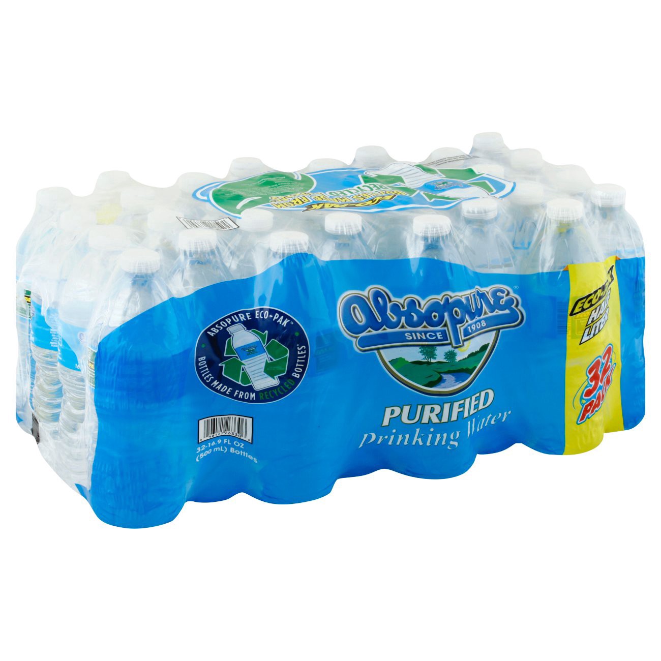 Half liter. Eco-Pak. Absopure Eco-Pak. Bottles made from recycled bottles (10% minimum recycled content). Since 1908. Absopure Water Company is proud to introduce the environmentally friendly Eco-Pak …