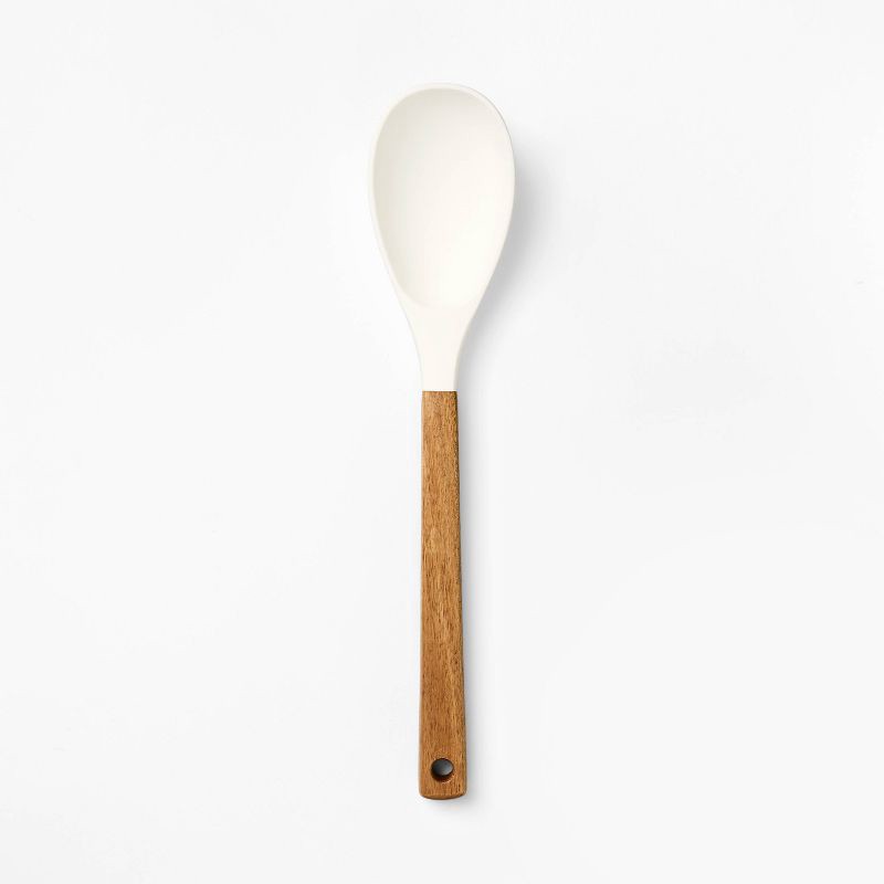 Stir, scoop or serve with ease with this Acacia Wood/Silicone Spoon from Figment™. Designed with a silicone head that helps prevent scratching of different cookware surfaces, this cooking spoon featur…