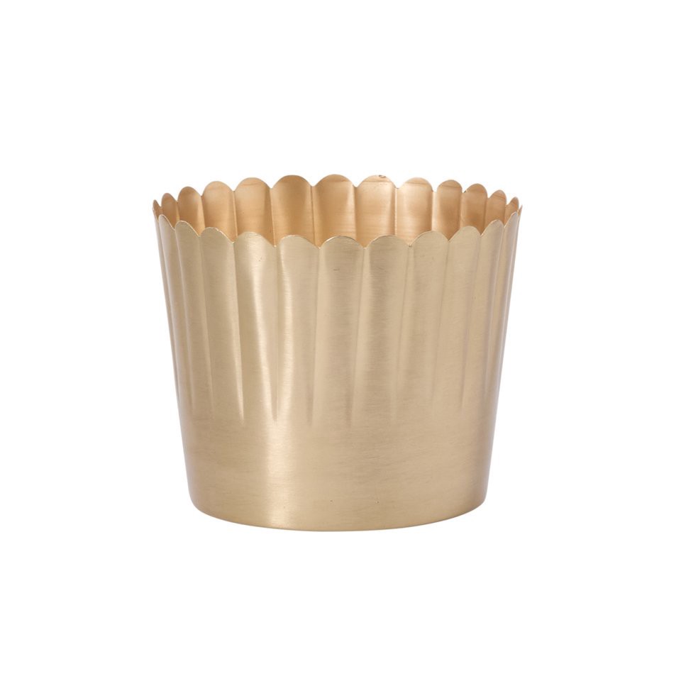 Dress up drop in poinsettias and seasonal trees with the Delicata Pot, a warm gold brushed metal pot with a scalloped detail around the opening. Small pleats stretch halfway down the pot for a bit of …