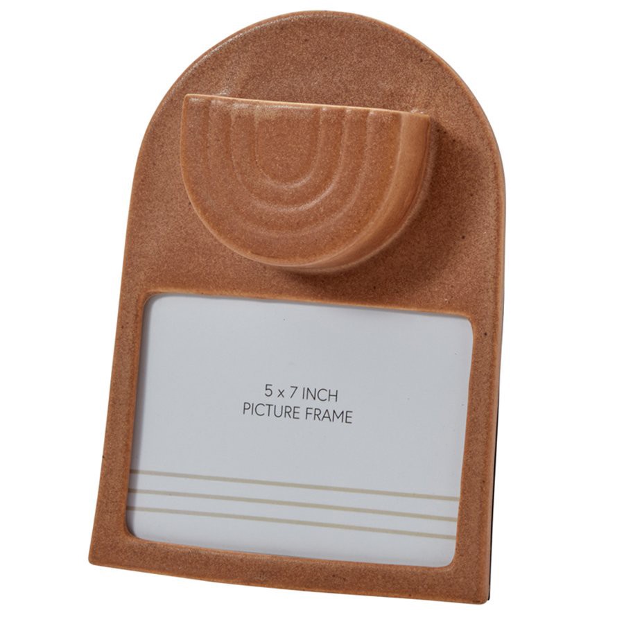 Pop a 5x7 photo & an air plant in the arched ceramic Farran Frame for an organic addition to decor, whether displayed on a tabletop or hung on the wall. A rounded pocket above the photo section is ideā¦