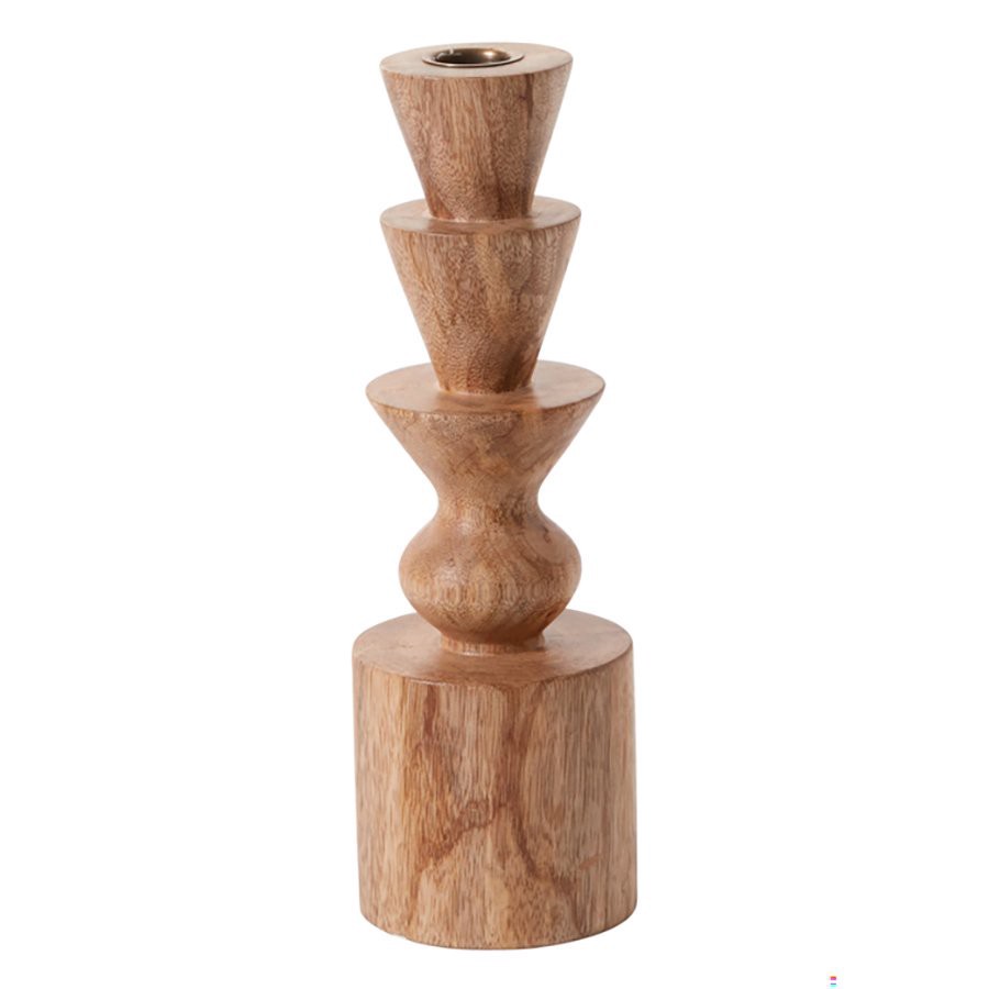 The earthy texture of wood & a geometric, sculptural design combines seamlessly for a stunning accent piece with the large, carved mango wood Manali Candleholder. Featuring a metal cup for a standard …