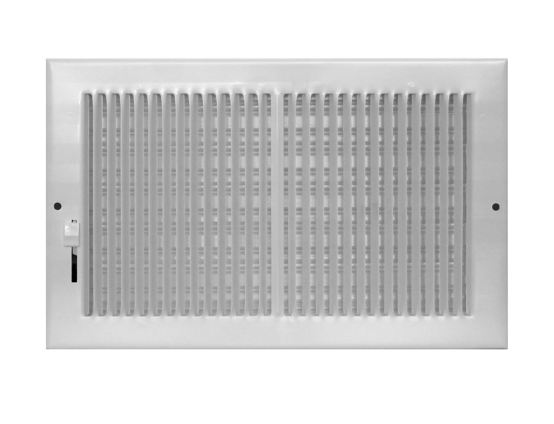 Steel construction. Multi-shutter damper. 1/3-In spaced fins. 7/8-In projection. Durable white finish. Available in other sizes and finishes.