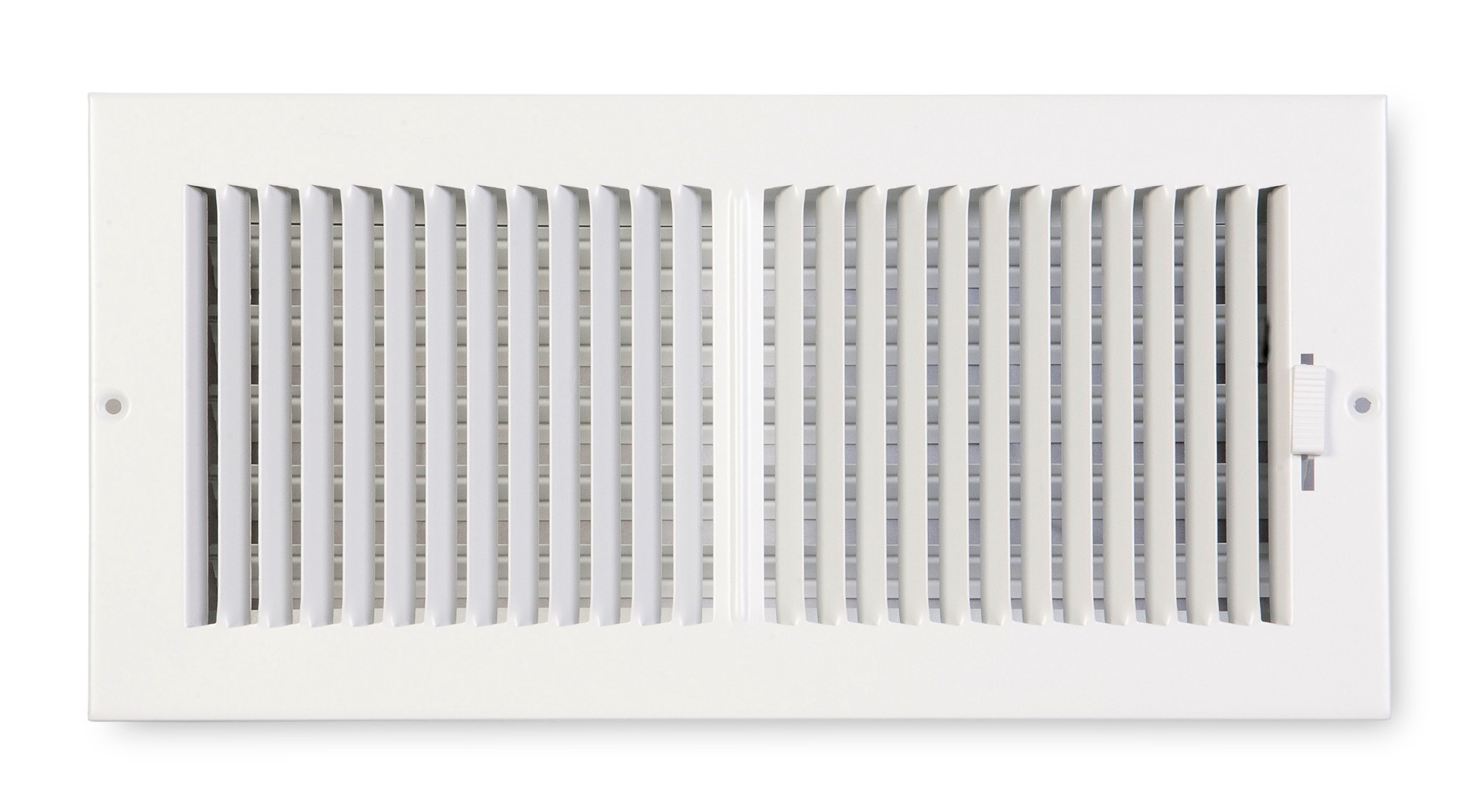 Steel construction. Multi-shutter damper. Two-way air deflection. 1/2-In spaced fins. Durable white finish. For sidewall or ceiling application.