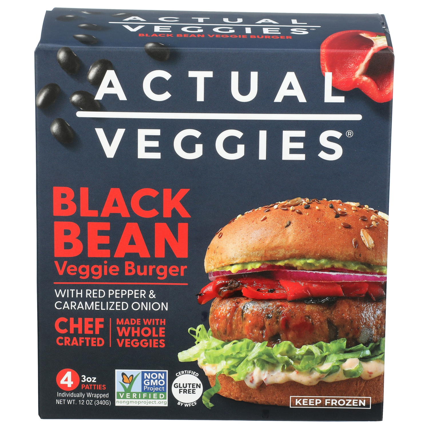Actual Veggies Black Bean Veggie Burger with Red Pepper & Caramelized Onion 4 - 3 oz Patties