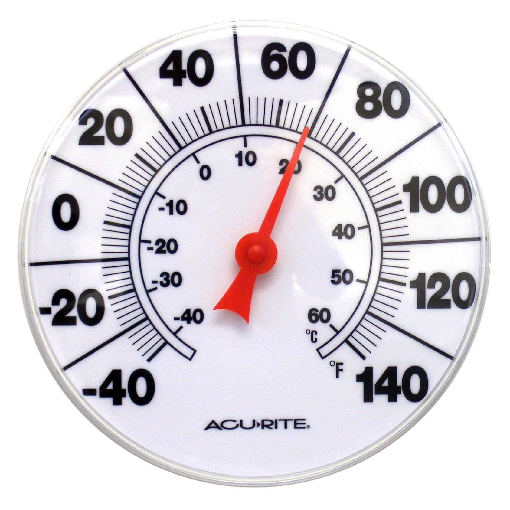 Displays current temperature readings in both Fahrenheit and Celsius. Measures temperatures from -40 °F to 140 °F (-40 °C to 60 °C). Weather-resistant materials designed for indoor or outdoor use. Bol…