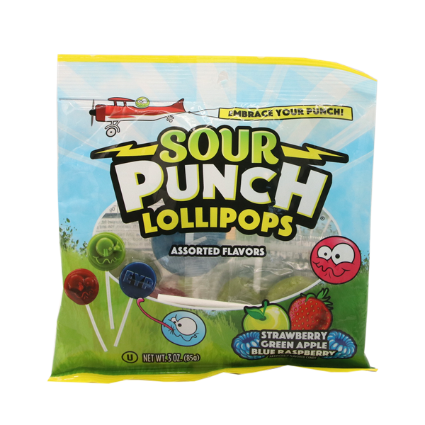 Adams & Brooks Sour Punch Lollipops, Assorted Flavors - 3 oz