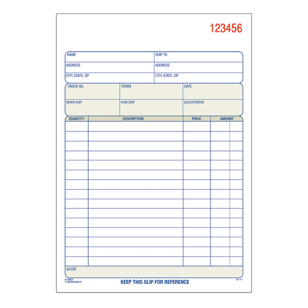 These 3-part carbonless order books make taking orders quick and accurate with entries for customer information, order number, terms, date, shipping information and salesperson. Convenient columns areā¦