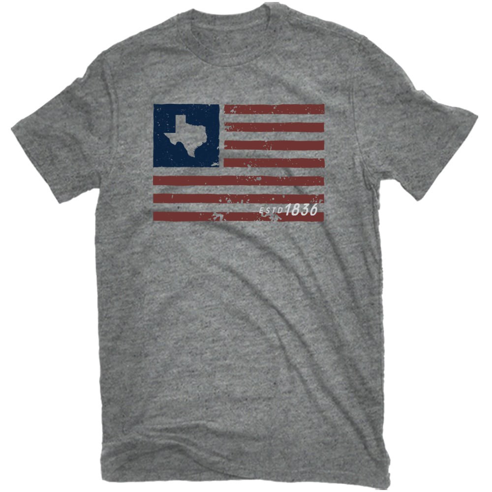 Texas State Love Themed T-Shirt. 140 GSM 60/40 Cotton Polyester Jersey. Front chest TX Flag graphic.
