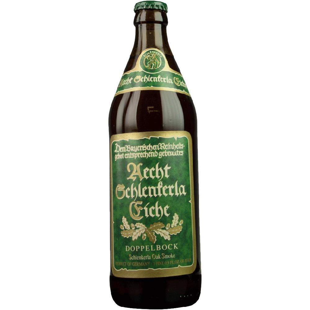 Germany- Rauchbier- 8% ABV. Pours a deep, clear amber color. "Schlenkerla Oak Smoke" is a Doppelbock beer brewed with 100% oak wood smoke-kilned malt imparting a smoother, more multi layered smoky not…