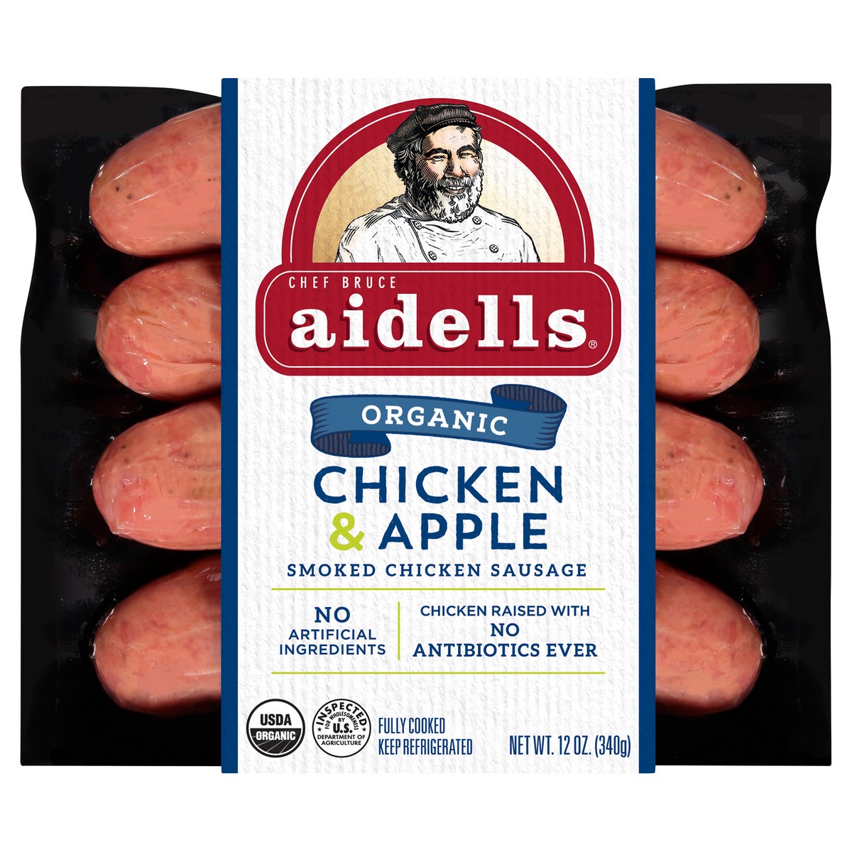 Made with real apples and all-natural organic chicken\, Aidells Chicken & Apple Smoked Organic Chicken Sausage is savory and sweet. Our sausage is fully cooked\, gluten-free and has no added nitrites\…