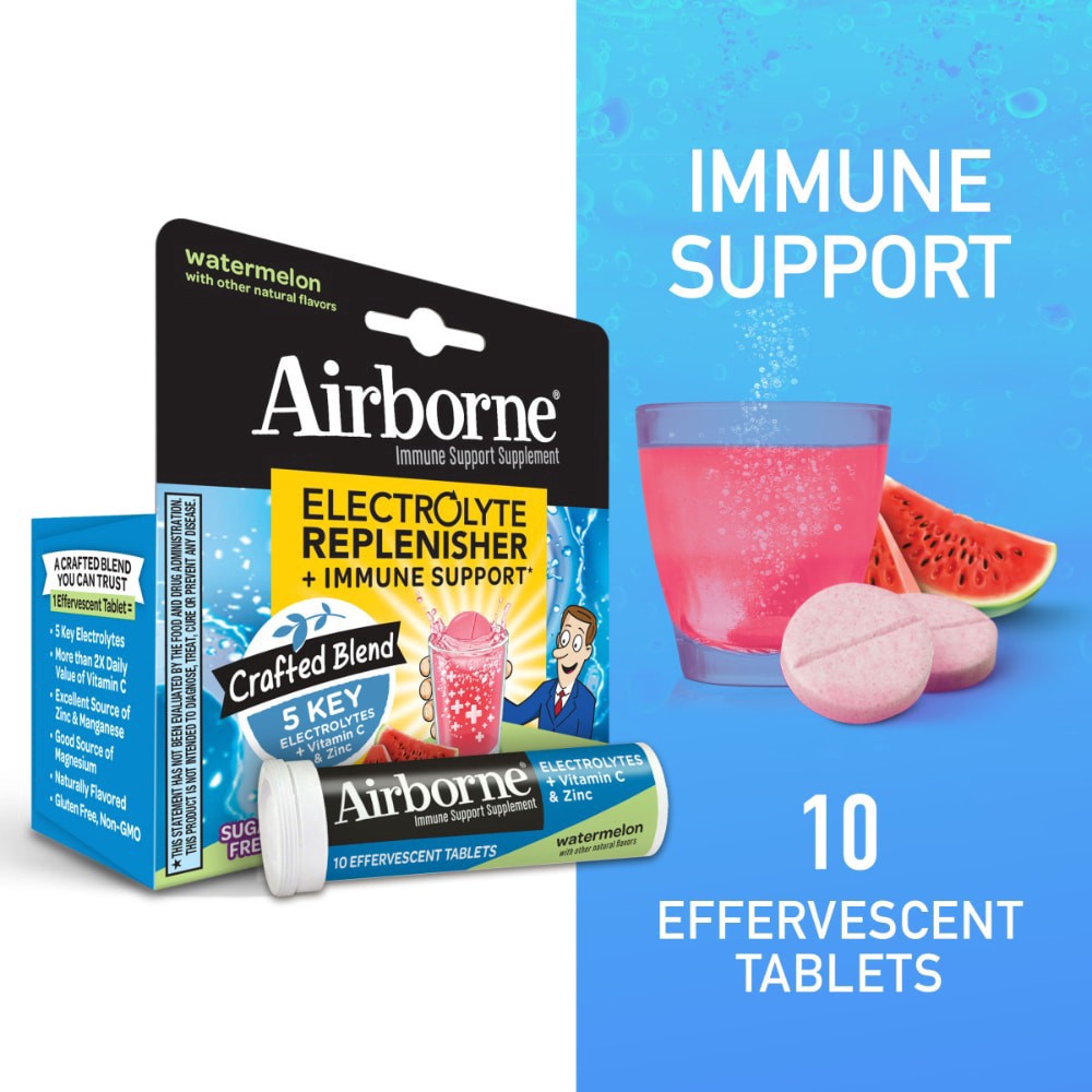 Airborne Electrolyte Effervescent-Watermelon 10ct. Electrolyte Replenisher + Immune Support Supplement