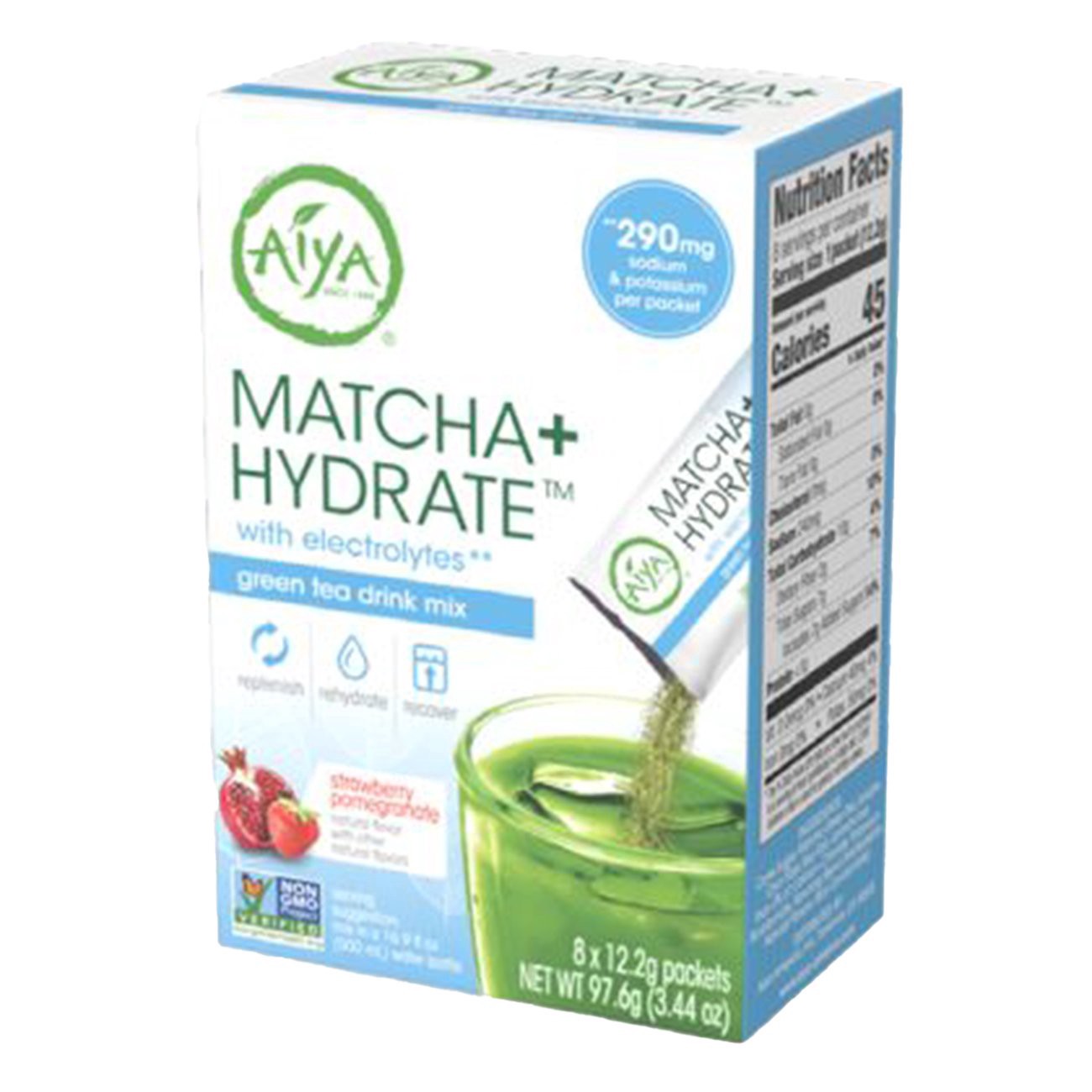 Aiya's MATCHA+ HYDRATE is designed as a post-workout beverage to help replenish the nutrients lost during an active session. Every packet contains 290mg of electrolytes (sodium and potassium).