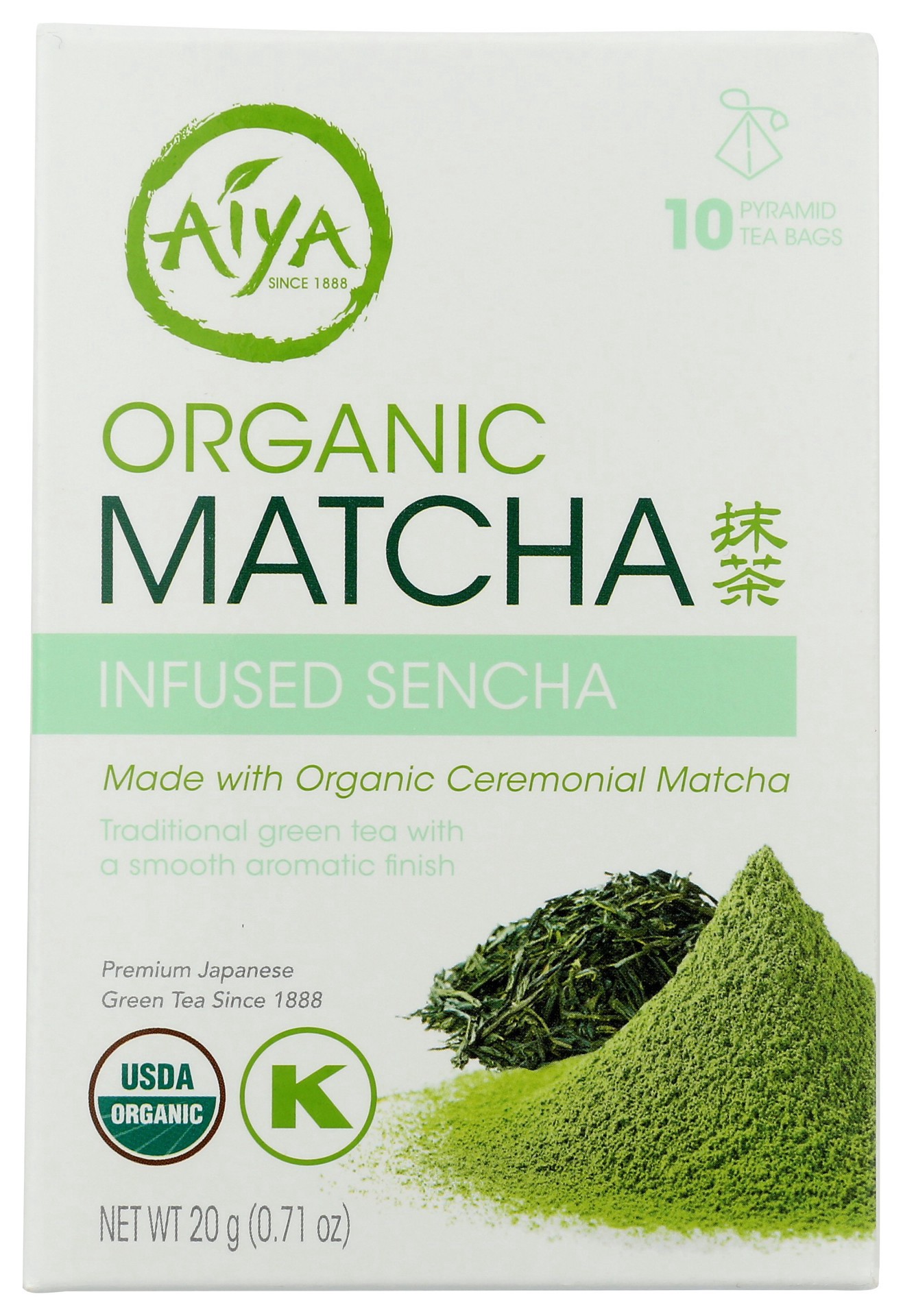 Aiyas Organic Matcha Infused Sencha is a bright, refreshing blend packaged into convenient pyramid tea bags. The most popular tea in Japan, Sencha is harvested in early spring for a crisp, vegetal freā¦