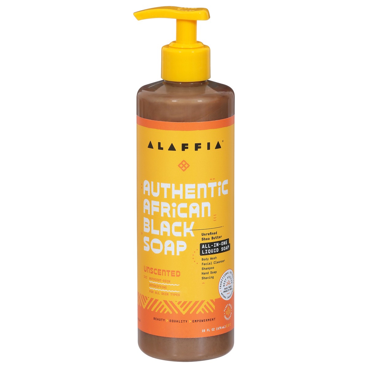 Unrefined shea butter. All-in-one liquid soap. Body wash. Facial cleaner. Shampoo. Hand soap. Shaving. Nutrient-rich. Detoxifying. For all skin types. Beauty. Equality. Empowerment. Ethical, handcraft…