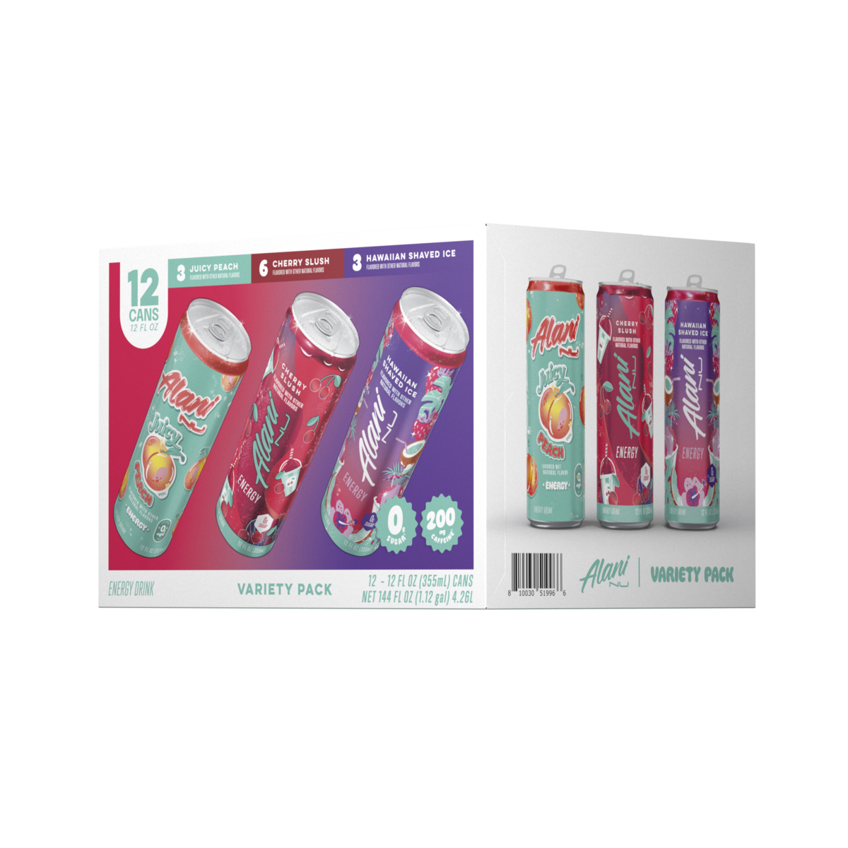 Alani Nu Juicy Peach/Cherry Slush/Hawaiian Shaved Ice Energy Drink Variety Pack 12 - 12 fl oz Cans