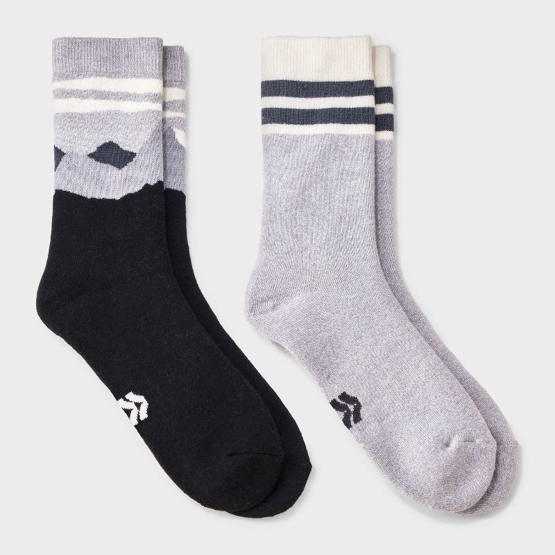 Stay warm and adventure-ready with the Boys' 2pk Mountain Print Outdoor Crew Socks from All In Motion™. Made from heavyweight knit fabric, these socks are built for durability and comfort during outdo…