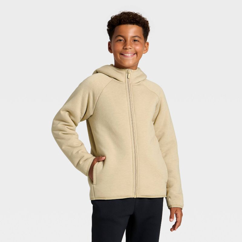 Boys' High Pile Fleece Full Zip Lined Hoodie - All In Motion™ Almond M