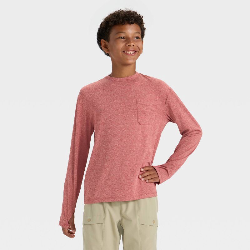 Why we're ALL IN:Crewneck long-sleeve tee designed in a solid hue. Made from recycled polyester-spandex blend fabric with moisture-wicking properties to help keep your child cool and comfy during a ra…