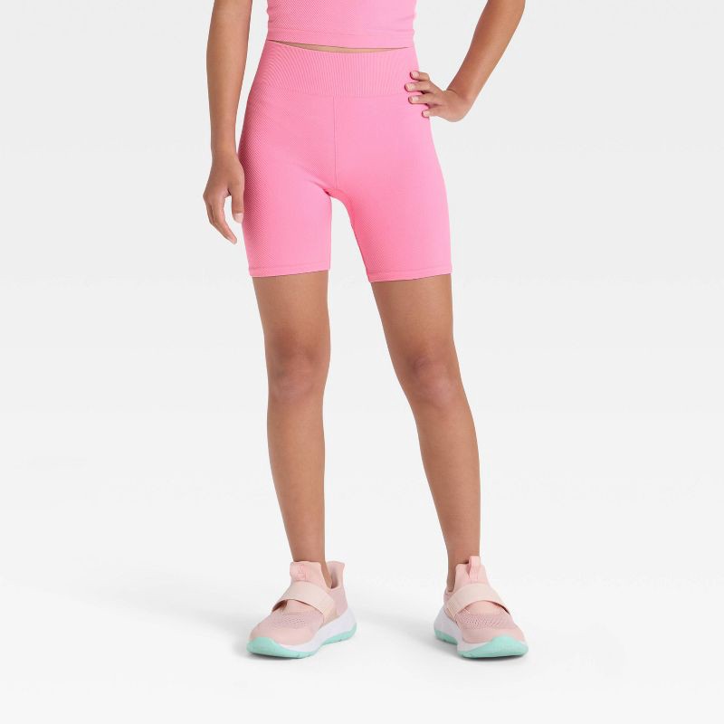 Why we're ALL IN:At-thigh bike shorts designed in a solid hue with a regular-rise cut. Made from nylon-spandex blend knit fabric and featuring a seamless design to offer stretchy comfort to your child…