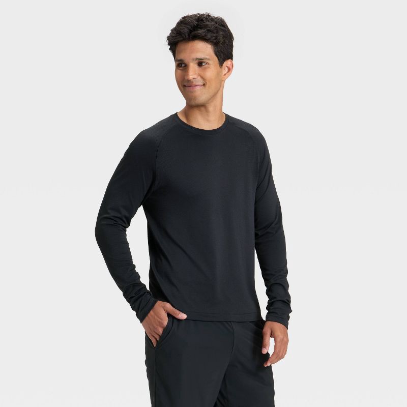 Why we're ALL IN:Long-sleeve T-shirt designed in a solid hue is perfect for the gym, outdoor activities and general everyday wear. Made from nylon knit fabric in a regular fit with a seamless design f…