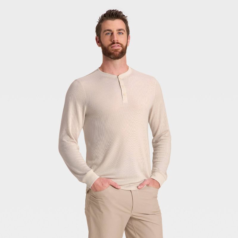 - Must-have features: Waffle texture, henley neckline, long sleeves, regular fit, below-waist length