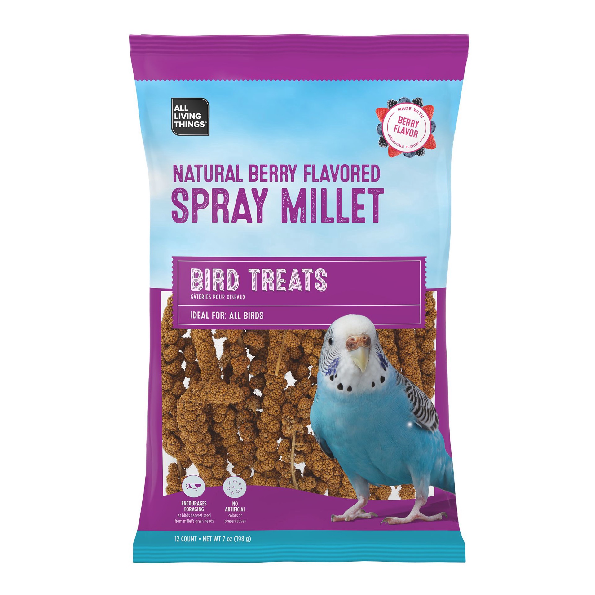 slide 1 of 1, All Living Things Naturally Berry Flavored Spray Millet Bird Treats, 8 oz