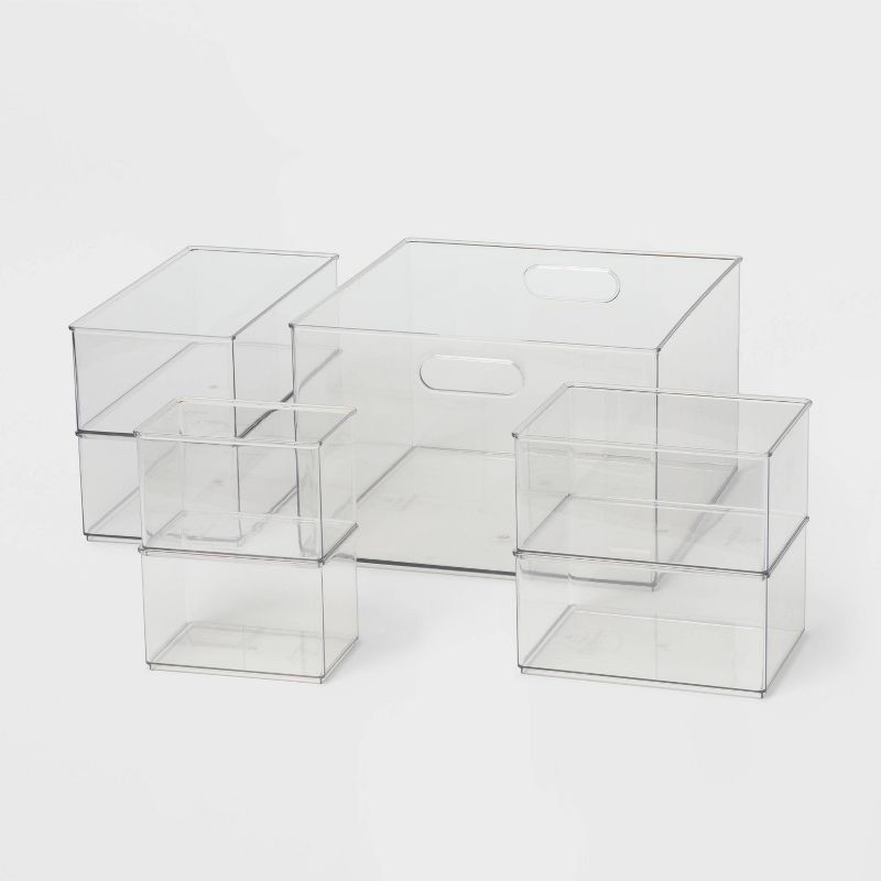 Simplify your home organization with this All-Purpose Clear Combination Set from Brightroom™. This set includes four sizes of containers that can be placed inside a large container with built-in handl…