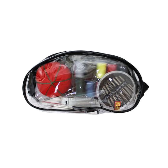 Get the Black Deluxe Sewing Kit in Vinyl Zipper Pouch at Michaels. Perfect starter kit for a blossoming seamstress. Black with clear sides. 1 kit. 5.5" scissorsPin cushion. Pin cushionTape measure. Ta…