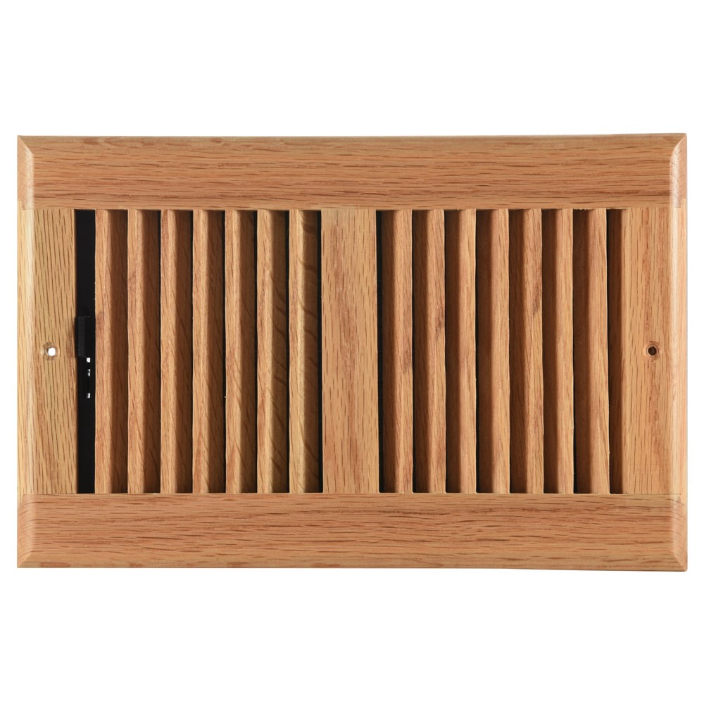 Solid oak construction. Louvered faceplate. Rustproof damper box. Premium stain and durable lacquer finish. For sidewall/ceiling application. Mounting screws included.