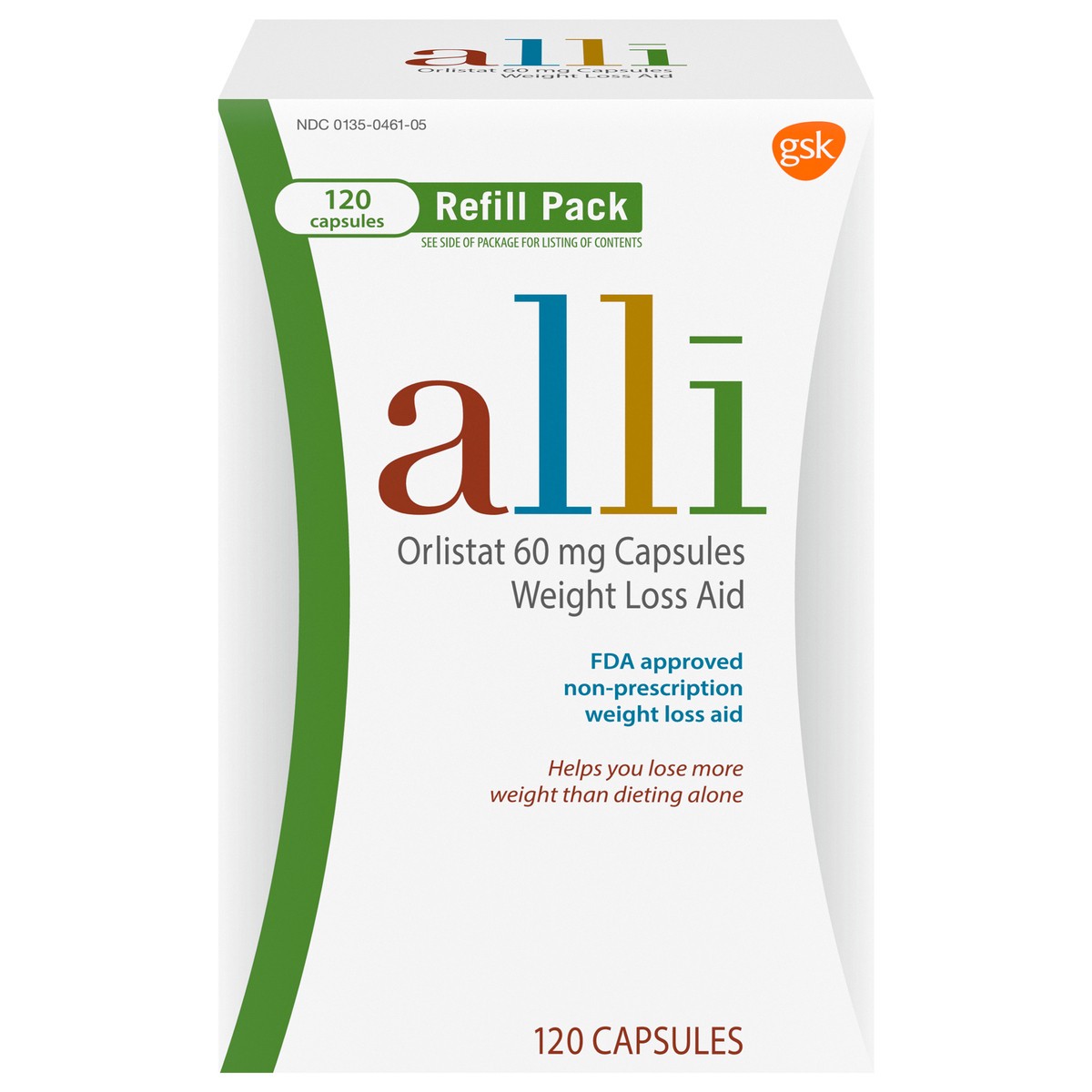 alli Diet Weight Loss Supplement Pills, Orlistat 60mg Capsules, 120 Count