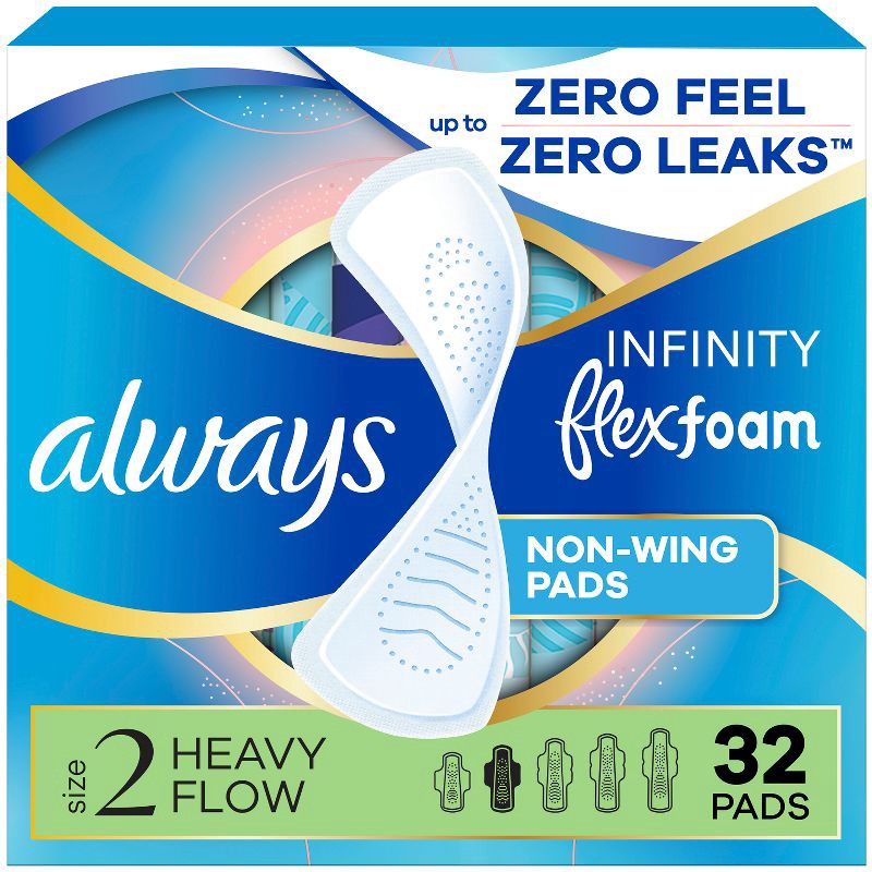 Always Infinity FlexFoam Pads without Wings - Super Absorbency - Unscented - Size 2 - 32ct