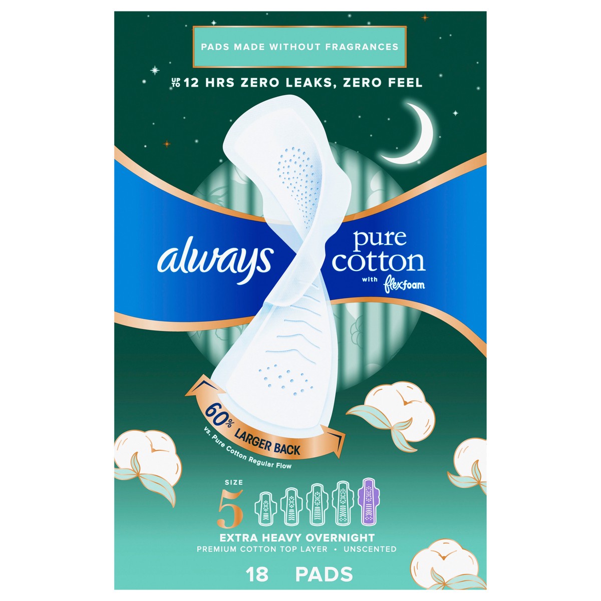 Try Always Pure Cotton Pads made with FlexFoam Overnight pads for up to 12 hours of Zero Leaks, Zero Feel protection. Discover the best of science and nature. Always Pure Cotton with FlexFoam pads com…