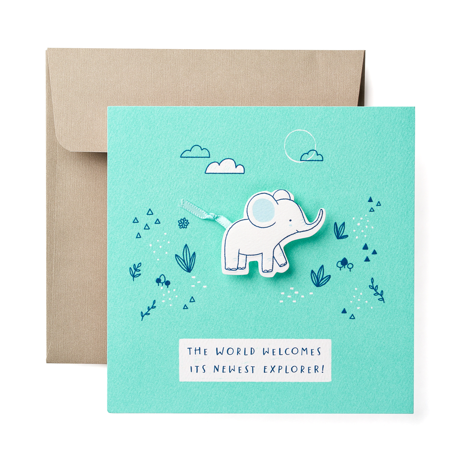 Welcome the worlds newest explorer with an elephantastic greeting! From American Greetings, Present Company brings a new baby card that makes it easy to fit cuteness and meaning into your very full li…