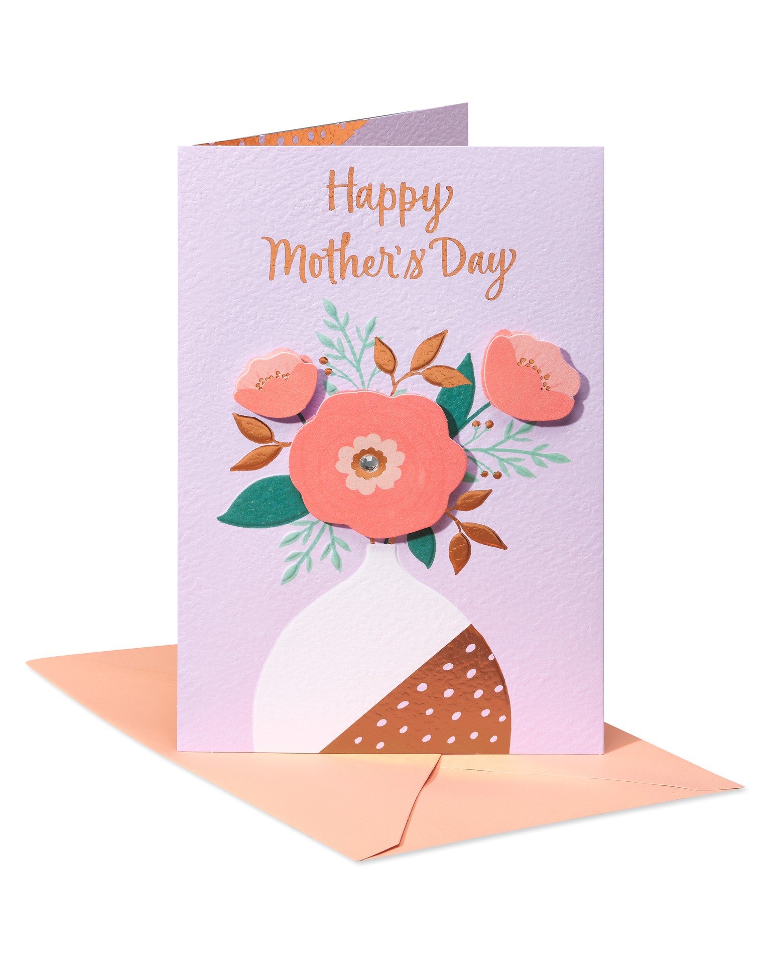 American Greetings Wish her all the joy she brings to you and others with this elegant Mother's Day card from American Greetings! Perfect for any special woman on Mother's Day. Sophisticated design features a vase of flowers with a midcentury modern feel. Richly embellished with gems, layered paper attachments, and foil stamping. Overall embossing simulates handmade paper. Full color art throughout. Complimentary message expresses how much happiness she brings to everyone she cares about. Perfect for mother, like a mom, stepmother, grandmother, aunt, sister, daughter, friend, caregiver, and more. Printed on quality cardstock. Envelope included. Only from American Greetings.