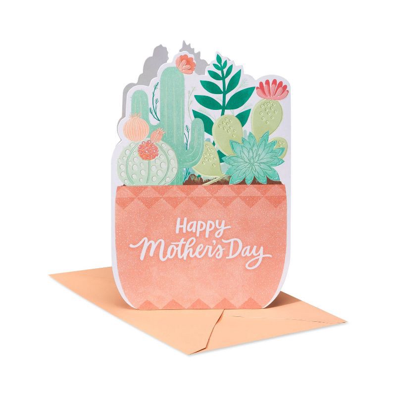 Perfect for any special woman in your life – this bright and contemporary Mother's Day card from American Greetings! Die-cut design with colorful potted succulents in Southwest tones and a fresh illus…