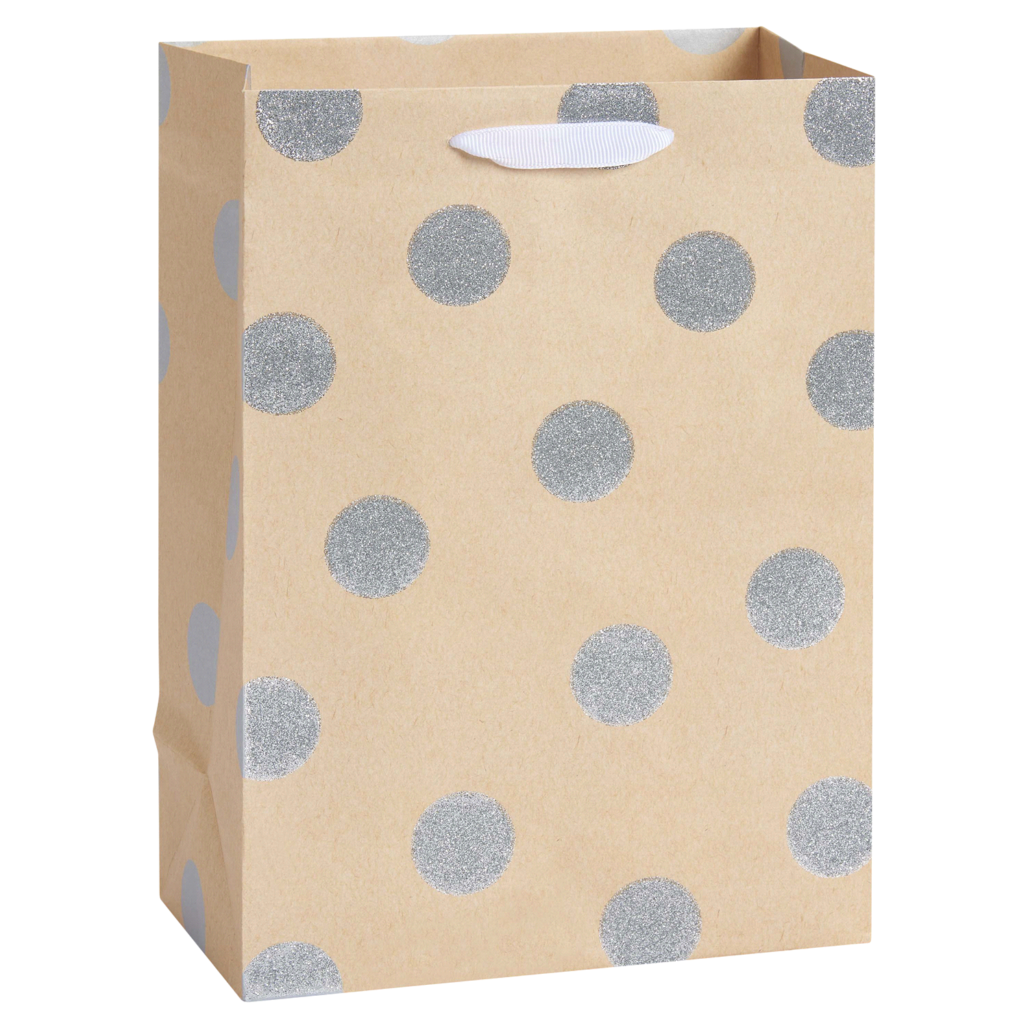 American Greetings Medium Gift Bag, Silver Dots on Kraft,